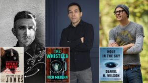 Henry is an aspiring ghost hunter on the cusp of social media fame in the novel, “The Whistler“, by Nick Medina (Tunica-Biloxy). As the title suggests, he tempts fate by intentionally whistling into the night, provoking an evil entity that turns his life upside down and forces him to confront his past wrongdoing. Daniel H. Wilson (Cherokee) imagines a frightening alien invasion where first contact happens in the middle of the Cherokee Nation in Oklahoma in “Hole in the Sky“. And Stephen Graham Jones (Blackfeet) slices open the real horrors of the late 1800s Indian Wars in “Buffalo Hunter Hunter” with a tortured monster that wreaks vengeance on soldiers responsible for the Marias Massacre and the extermination of the buffalo. These are a few new horror novels written by Indigenous authors that we are putting on the Native Bookshelf for this year’s spooky season.